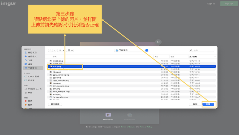 Step3.請點選您要上傳的照片,並打開。 上傳前請先確認尺寸比例是否正確